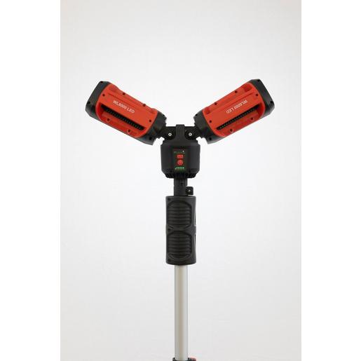 AccuLux 2x25 Watt LED-Arbeitsstrahler mit Stativ, Li-Ion Akku 14,8V, ausziehbar, leistungsstark, robust und mit seinem Dreibein-Stativ sehr standfest. Er wiegt nur 4,4 kg, ist kompakt, leicht aufzubauen und auf bis zu 2,24 Meter Höhe ausziehbar. Der Strahler ist mit bis zu 6000 Lumen extrem hell und kann variabel um 2 x 90° verstellt und um bis zu 330° verdreht werden. Bis zu 16 Stunden Leuchtdauer. Lichttemperatur von 2700 bis 6500K einstellbar