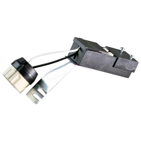 Bügel mit Fassung GZ10, mit Zugentlastung. Zur Federbefestigung mit 2-poliger Steckklemme 2 x 2,5 mm² und Zugentlastung. Ausführung: GZ10, Material: Stahl / Kunststoff / Keramik, Schutzart raumseitig: nach DIN EN 60529: IP20, Schutzklasse: (EN 61140) II, Spannung: 230 V AC 50 Hz, Art der Dimmung: sonstige.