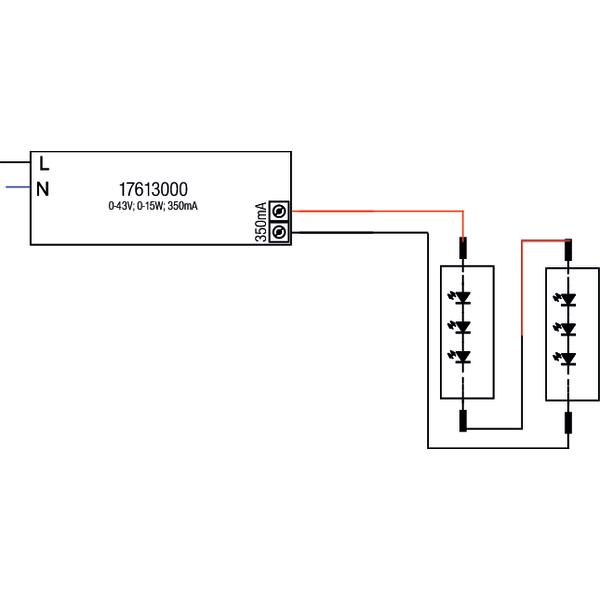 LED-Konverter 350 mA, schaltbar, weiß, rechteckig. Dieses Betriebsgerät erfüllt die Anforderungen für Sicherheitsbeleuchtungsanlagen nach DIN EN 50172 VDE 0108-100:2005-01. Dieser Konverter ist durch Sicherungseinrichtungen gegen Überspannung und Kurzschluss sowie thermische und elektrische Überlastung geschützt. Die Eingangs- und die Ausgangsklemme ist für Leitungen mit einem Querschnitt von bis zu 2,5 mm² geeignet. Material: Kunststoff, Schutzart raumseitig: nach DIN EN 60529: IP20, Schutzklasse: (EN 61140) II, Spannung: 230V AC 50Hz, Leistung: 15 W, Dimmbar: Nein, Art der Dimmung: schaltbar.