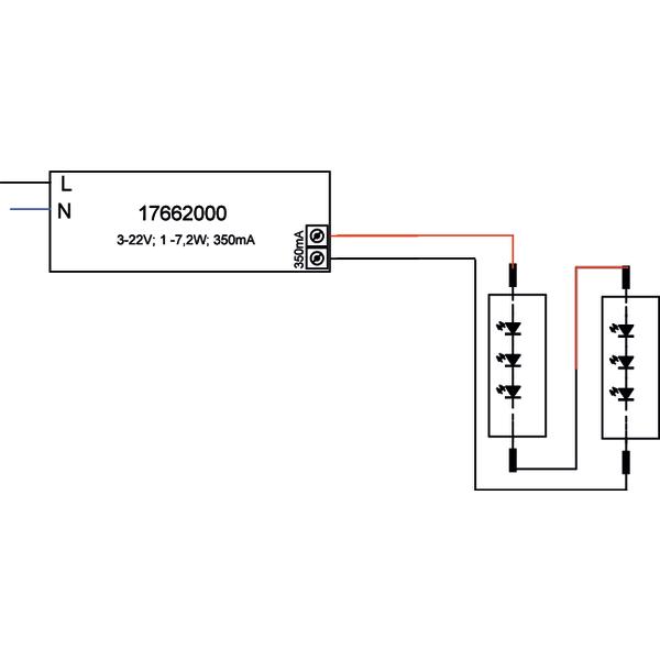 LED-Konverter 350 mA, schaltbar, schwarz, rechteckig. Dieser Konverter ist durch Sicherungseinrichtungen gegen Überspannung und Kurzschluss sowie thermische und elektrische Überlastung geschützt. Die Eingangs- und die Ausgangsklemme ist für Leitungen mit einem Querschnitt von bis zu 1,5 mm² geeignet. Material: Kunststoff, Schutzart raumseitig: nach DIN EN 60529: IP20, Schutzklasse: (EN 61140) II, Spannung: 230V AC 50Hz, Leistung: 7,2 W, Dimmbar: Nein, Art der Dimmung: schaltbar.