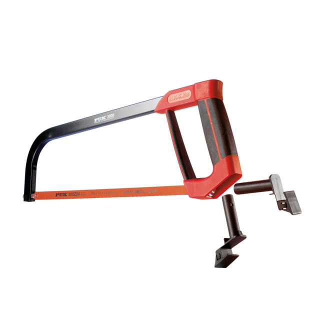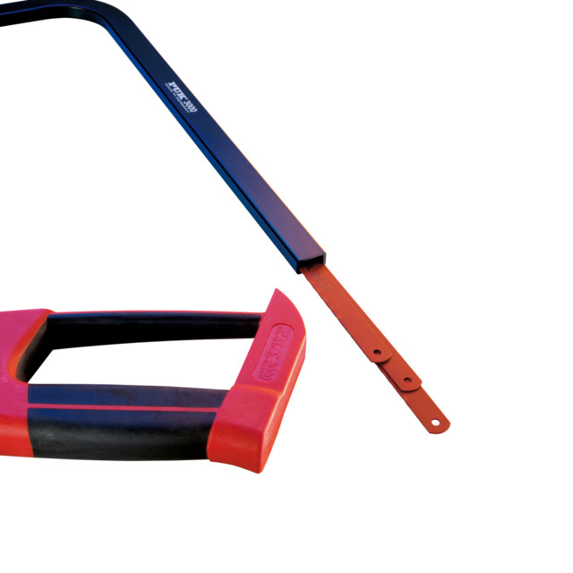 Innovativer Metallsägebogenmit 2-Komponenten-Kunststoffgriff in ultraleichter Bauform. Ergonomischer Sägelinie, glasfaserverstärkt. Gesamtlänge 400 mm, passend für viele Werkzeugkoffer (Bodenschale), integrierter Spannschlüssel und Blattmagazin, pulverbeschichtet, Bi-Metallsägeblatt 300 mm, 24 Zähne/Zoll.
