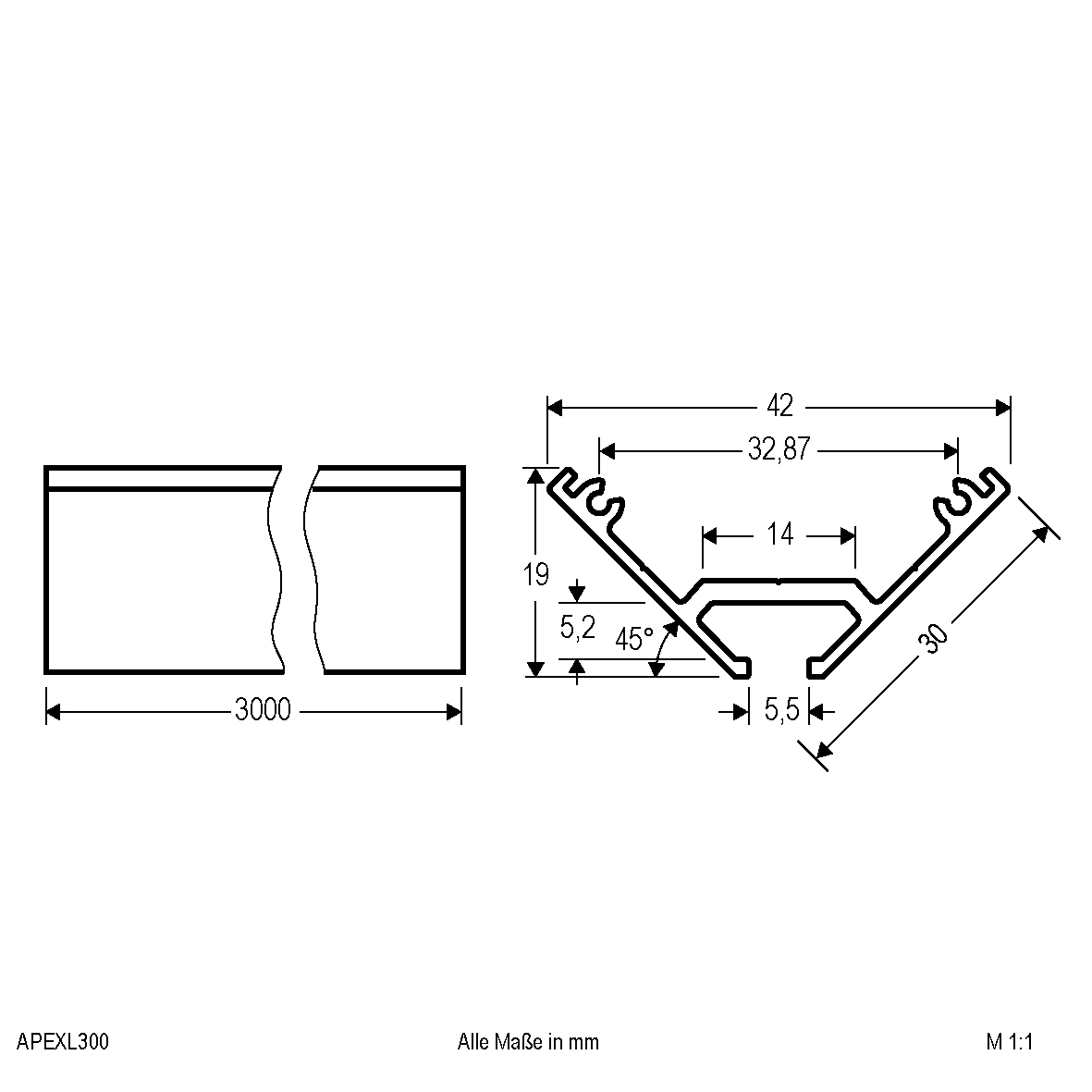 EVN Lichttechnik Alu-Profil 300cm-Alu eloxiert APEXL300