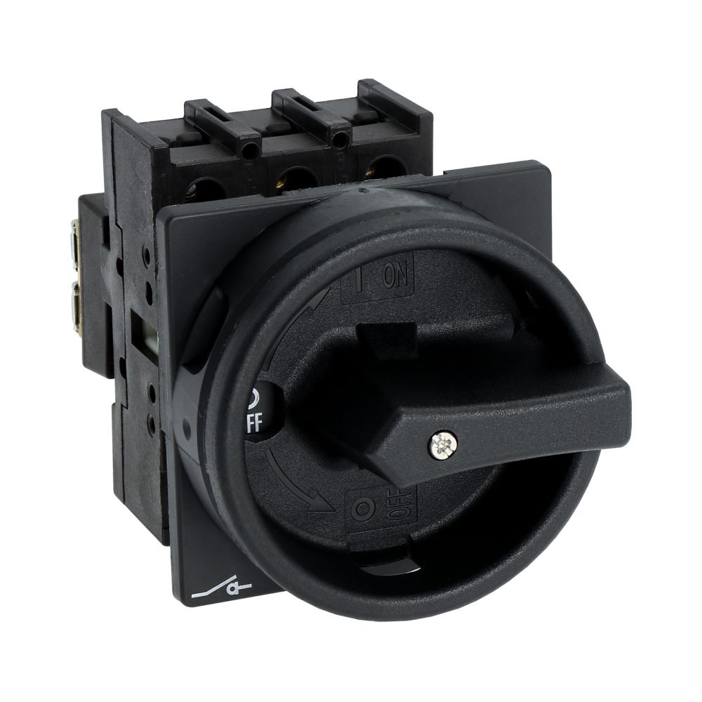 Hauptschalter, P1, Bemessungsdauerstrom (Iu): 25 A, Funktionen: Verriegelbar, HALT-Funktion, Ausstattung: Schwarzer Drehgriff und Sicherungsring, Montageart: Einbau, Polzahl: 3-polig, Verriegelungsvorrichtung: In der Position 0 (Aus) verriegelbar, Schutzart: NEMA 12Durchschnittliche Bewertung von 0 von 5 Sternen