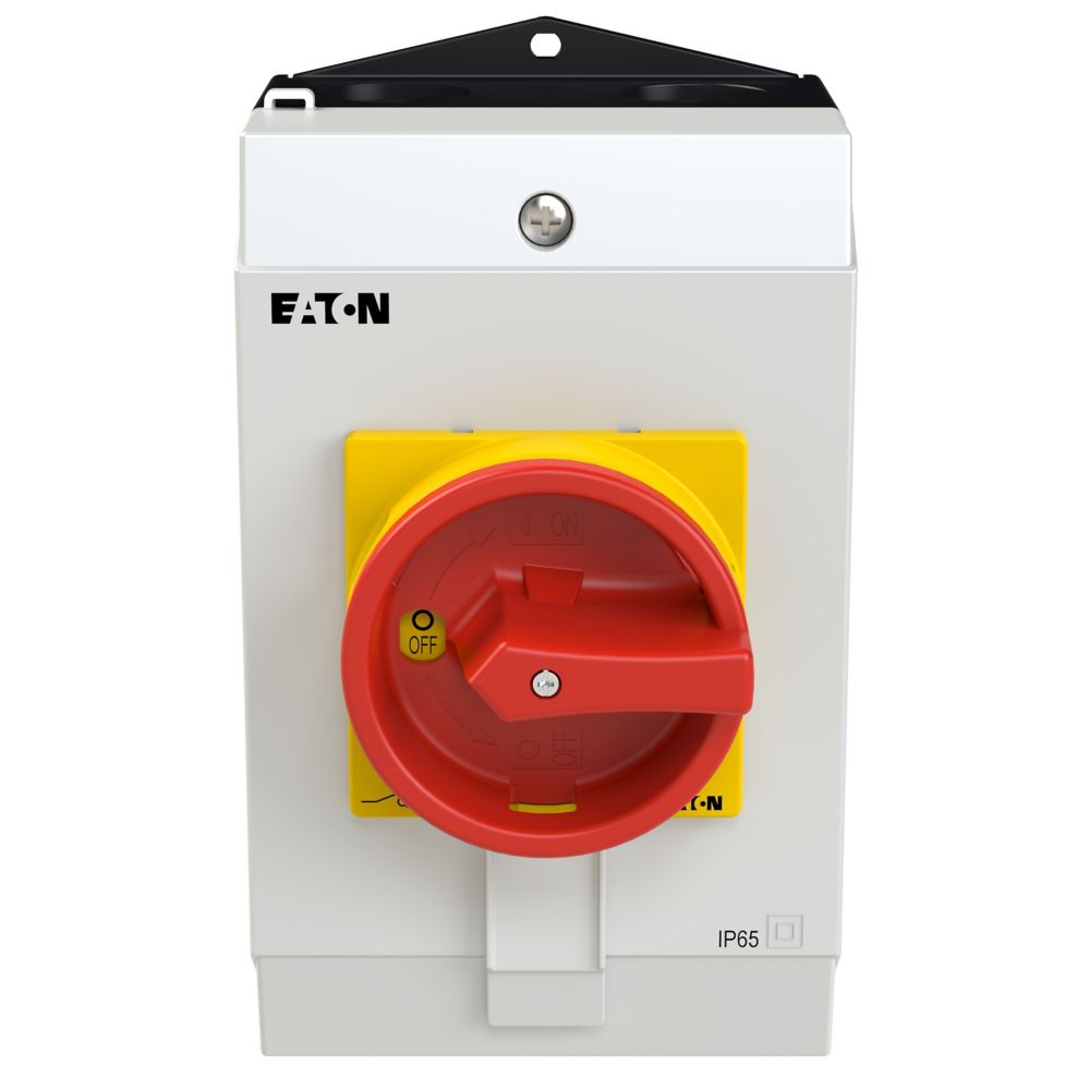 Hauptschalter, Sortiment: Hauptschalter, Wartungsschalter, Typkenner: P1, STOPP-Funktion: NOT-AUS-Funktion, mit rotem Drehgriff und gelbem Sperrkranz, Information zum Lieferumfang: Hilfsschalterkontakt oder Neutralleiter nachrüstbar., 3-polig, Abschließbarkeit: abschließbar in 0-Stellung, Schutzart: IP65, Bauform: Aufbau, Bemessungsbetriebsleistung AC-23A, 50 - 60 Hz 400 V: P = 11 kW, Bemessungsdauerstrom: Iu = 25 A, Normen und Bestimmungen: IEC/EN 60947, VDE 0660, IEC/EN 60204, Lasttrennschalter nach IEC/EN 60947-3Durchschnittliche Bewertung von 0 von 5 Sternen