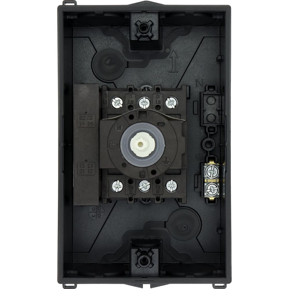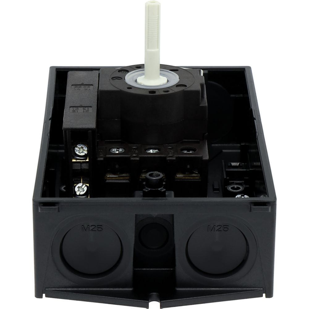 Hauptschalter, P1, Bemessungsdauerstrom (Iu): 25 A, Funktionen: HALT-Funktion, Verriegelbar, Ausstattung: Schwarzer Drehgriff und Sicherungsring, Montageart: Aufputzmontage, Polzahl: 3-polig, Verriegelungsvorrichtung: In der Position 0 (Aus) verriegelbar, Schutzart: NEMA 12Durchschnittliche Bewertung von 0 von 5 Sternen