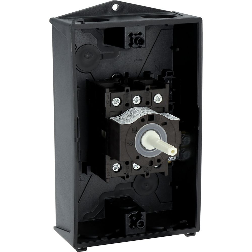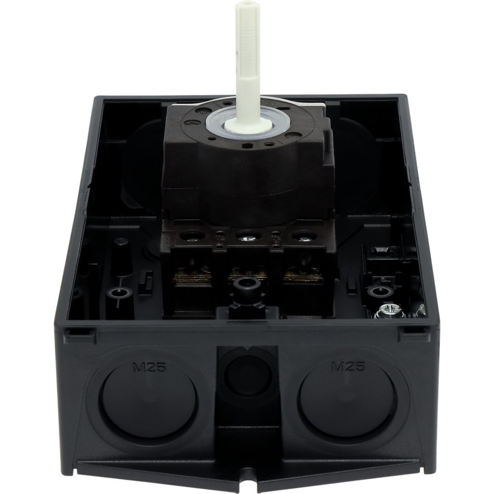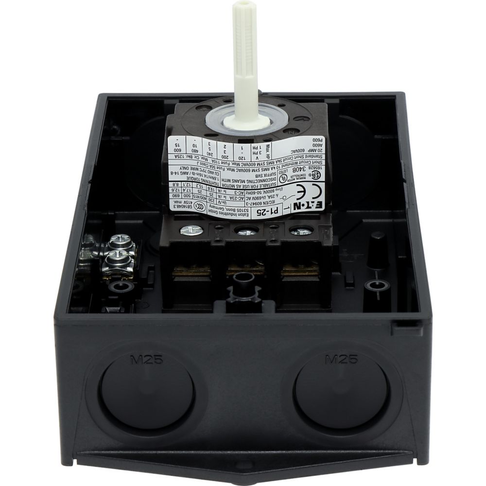 Hauptschalter, P1, Bemessungsdauerstrom (Iu): 25 A, Funktionen: HALT-Funktion, Verriegelbar, Ausstattung: Schwarzer Drehgriff und Sicherungsring, Montageart: Aufputzmontage, Polzahl: 3-polig, Verriegelungsvorrichtung: In der Position 0 (Aus) verriegelbar, Schutzart: NEMA 12Durchschnittliche Bewertung von 0 von 5 Sternen