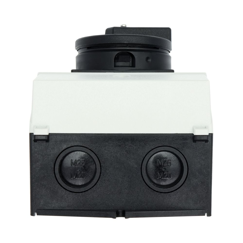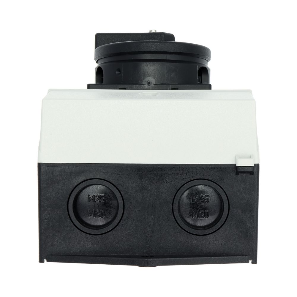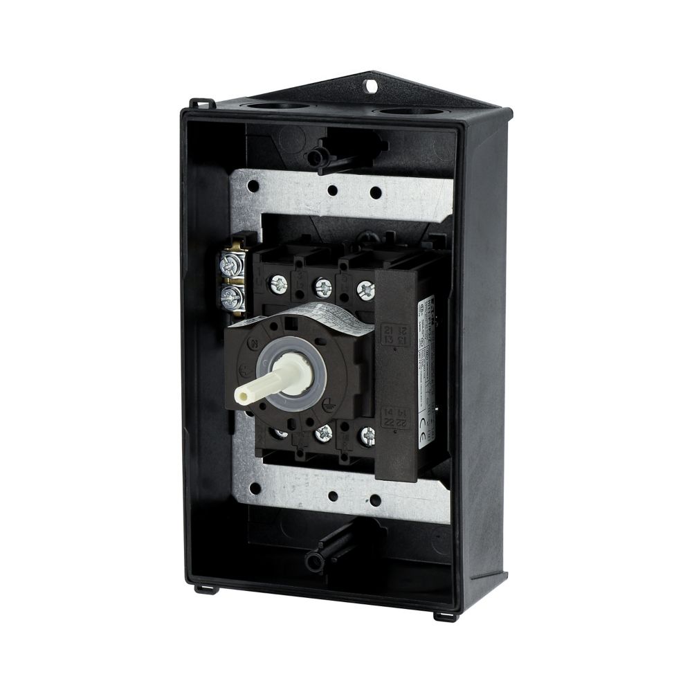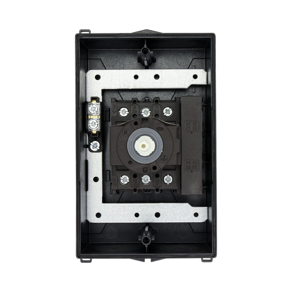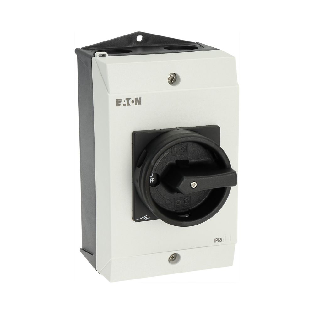 Hauptschalter, P1, Bemessungsdauerstrom (Iu): 25 A, Funktionen: HALT-Funktion, Verriegelbar, Ausstattung: Schwarzer Drehgriff und Sicherungsring, Montageblatt-Bildschirm, Montageart: Aufputzmontage, Polzahl: 3-polig, Verriegelungsvorrichtung: In der Position 0 (Aus) verriegelbar, Schutzart: NEMA 12Durchschnittliche Bewertung von 0 von 5 Sternen