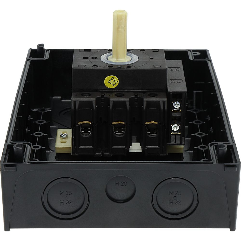 Zubehör für Nockenschalter gemäß IEC/EN60947-3, Größe T0, T3, P1, 690 V/20A, Schutzart Front IP65, Schwarzer Griff mit Zylindervorhängeschloss. Allgemeine Ausführung: Isoliermaterial, Gehäuse zur Oberflächenmontage, Einbau, Zentraleinbau, Rückseitenmontage und Montage in der Wartungsverteilung IVS Die leistungsfähigen, robusten, kompakten Nockenschalter T finden in der Industrie Anwendung, Handwerk
