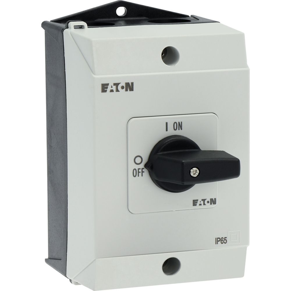 EIN-AUS-Schalter, Sortiment: EIN-AUS-Schalter, Typkenner: T0, mit schwarzem Knebel und Frontschild, 3-polig, Schutzart: IP65, Bauform: Oberflächenmontage, Schaltwinkel: 90 °, Schaltverhalten: rastend, Frontschild: 0-1, Bemessungsbetriebsleistung AC-23A, 50 - 60 Hz 400 V: P = 5,5 kW, Bemessungsdauerstrom: Iu = 20 A, 2 Baueinheit(en), Normen und Bestimmungen: IEC/EN 60947, VDE 0660, IEC/EN 60204, Lasttrennschalter nach IEC/EN 60947-3Durchschnittliche Bewertung von 0 von 5 Sternen
