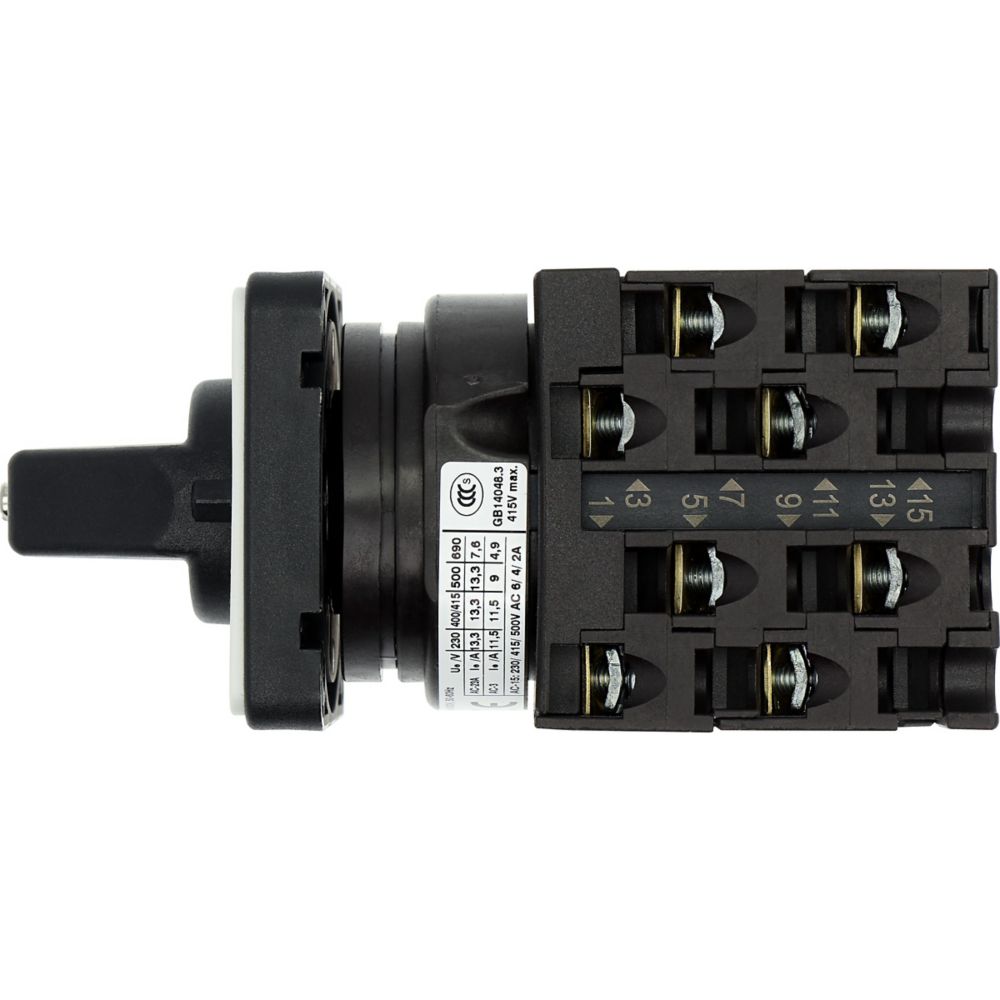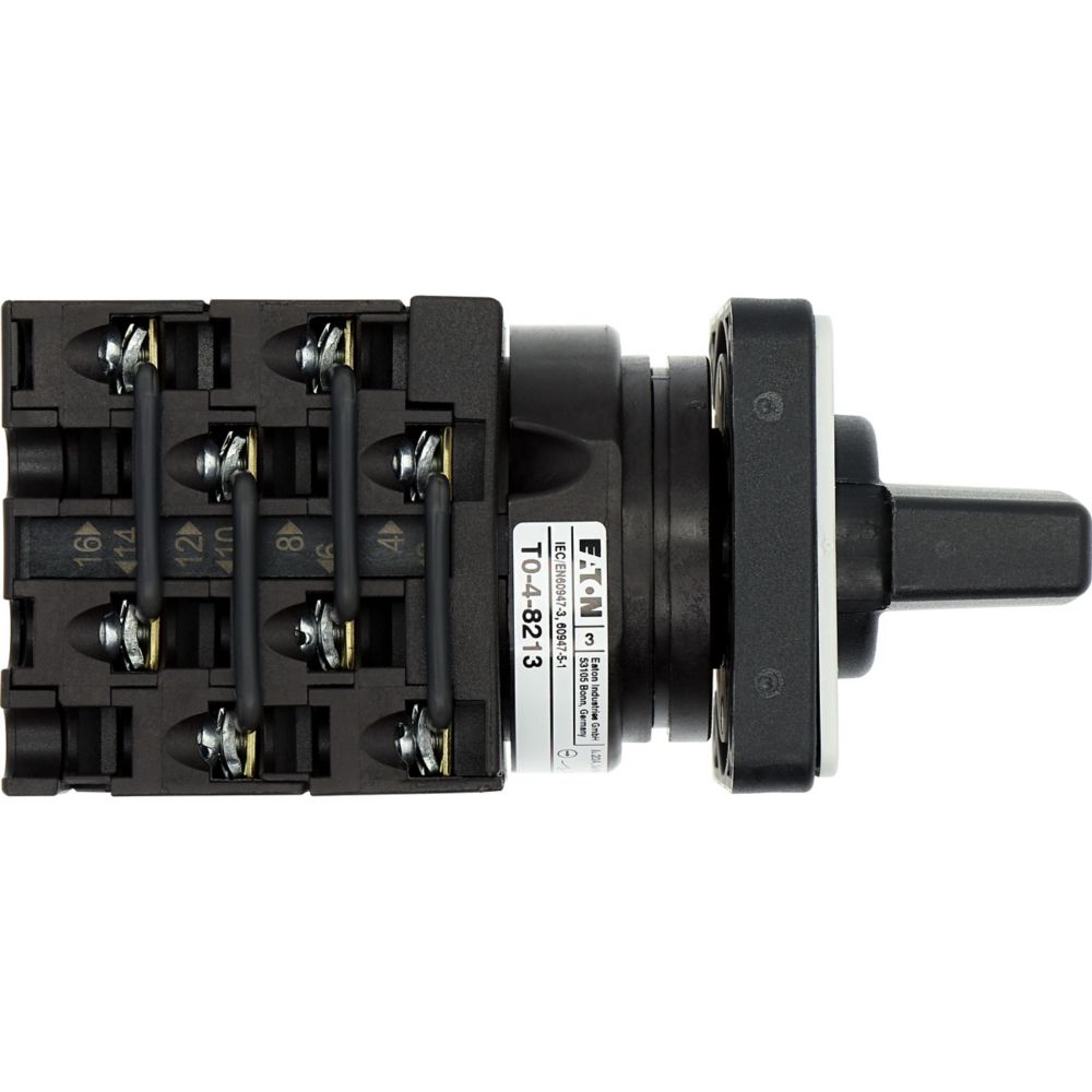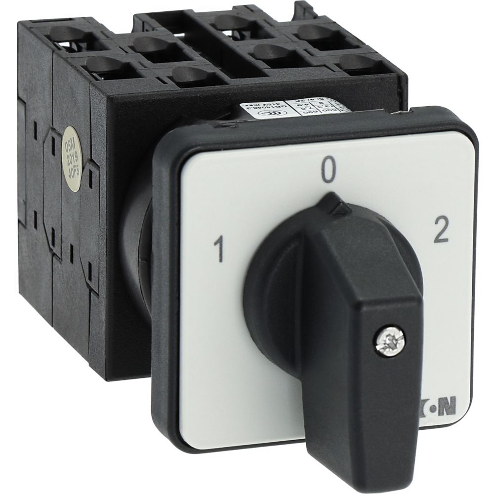 Umschalter, Sortiment: Steuerschalter, Typkenner: T0, mit schwarzem Knebel und Frontschild, Kontakte: 8, Schutzart: Front IP65, Bauform: Einbau, Schaltwinkel: 60 °, Schaltverhalten: rastend, mit 0-Stellung, Frontschild: 1-0-2, Bemessungsbetriebsleistung AC-23A, 50 - 60 Hz 400 V: P = 5,5 kW, Bemessungsdauerstrom: Iu = 20 A, 4 Baueinheit(en), Normen und Bestimmungen: IEC/EN 60947, VDE 0660, IEC/EN 60204, CSA, UL, Lasttrennschalter nach IEC/EN 60947-3Durchschnittliche Bewertung von 0 von 5 Sternen