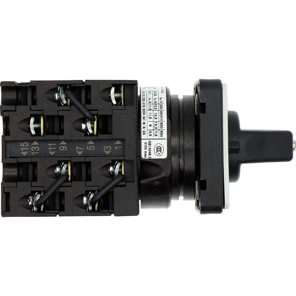 Polumschalter, Sortiment: Steuerschalter, Typkenner: T0, mit schwarzem Knebel und Frontschild, Kontakte: 8, Schutzart: Front IP65, Bauform: Einbau, Schaltfunktion: Dahlander-Schaltung, 2 Drehzahlen, Schaltwinkel: 60 °, Schaltverhalten: rastend, mit 0-Stellung, Frontschild: 1-0-2, Bemessungsbetriebsleistung AC-23A, 50 - 60 Hz 400 V: P = 5,5 kW, Bemessungsdauerstrom: Iu = 20 A, 4 Baueinheit(en), Normen und Bestimmungen: IEC/EN 60947, VDE 0660, IEC/EN 60204, CSA, UL, Lasttrennschalter nach IEC/EN 60947-3Durchschnittliche Bewertung von 0 von 5 Sternen