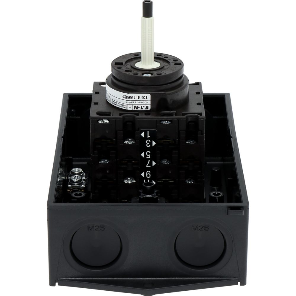 Zubehör für Nockenschalter T/Lasttrennschalter P gemäß IEC/EN 60947-3, Ausführung allgemein: Isoliermaterial, Aufbaugehäuse, Einbau, Zentraleinbau, Rückseitenmontage und Montage in der Wartungsverteilung IVS Die leistungsfähigen, robusten, kompakten Nockenschalter T finden in der Industrie Anwendung, Handwerk, und Gebäudetechnik-Management. Eine Vielzahl von Standardschaltungen steht zur Auswahl. Als Ergänzung werden spezielle kundenspezifische Schaltungen implementiert. Die Möglichkeiten sind hier fast unbegrenzt. Umfangreiches Zubehör komplettiert das Schalterprogramm und schafft weitere Einsatzmöglichkeiten.