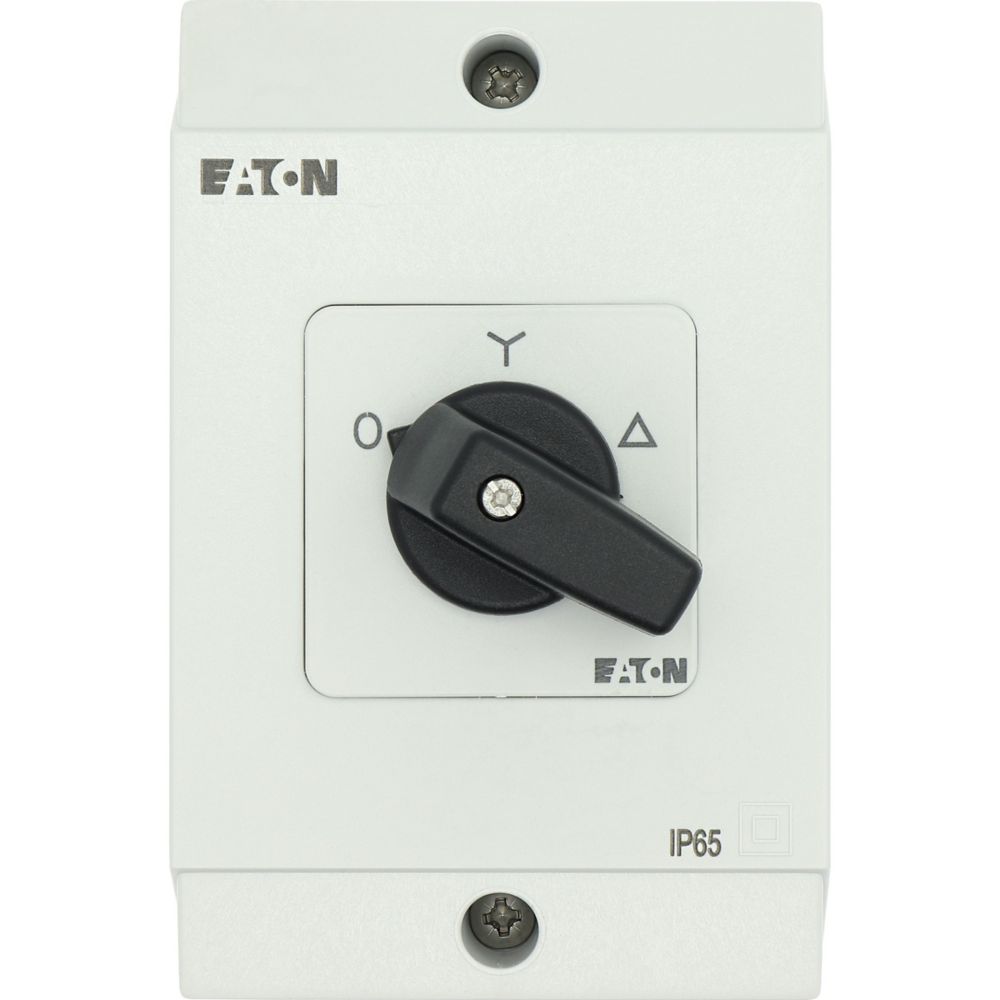 Stern-Dreieck-Schalter, Sortiment: Steuerschalter, Typkenner: T3, mit schwarzem Knebel und Frontschild, Kontakte: 8, Schutzart: IP65, Bauform: Oberflächenmontage, Schaltwinkel: 60 °, Schaltverhalten: rastend, mit 0-Stellung, Frontschild: 0-Y-D, Bemessungsbetriebsleistung AC-23A, 50 - 60 Hz 400 V: P = 15 kW, Bemessungsdauerstrom: Iu = 32 A, 4 Baueinheit(en), Normen und Bestimmungen: IEC/EN 60947, VDE 0660, IEC/EN 60204, CSA, UL, Lasttrennschalter nach IEC/EN 60947-3Durchschnittliche Bewertung von 0 von 5 Sternen