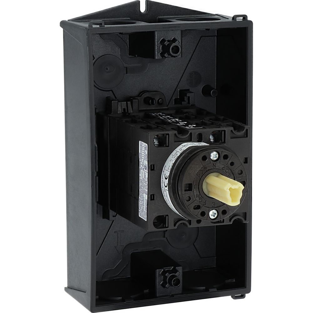 Wende-Stern-Dreieck-Schalter, Sortiment: Steuerschalter, Typkenner: T3, mit schwarzem Knebel und Frontschild, Kontakte: 10, Schutzart: IP65, Bauform: Oberflächenmontage, Schaltwinkel: 60 °, Schaltverhalten: rastend, mit 0-Stellung, Frontschild: D-Y-0-Y-D, Bemessungsbetriebsleistung AC-23A, 50 - 60 Hz 400 V: P = 15 kW, Bemessungsdauerstrom: Iu = 32 A, 5 Baueinheit(en), Normen und Bestimmungen: IEC/EN 60947, VDE 0660, IEC/EN 60204, CSA, UL, Lasttrennschalter nach IEC/EN 60947-3Durchschnittliche Bewertung von 0 von 5 Sternen