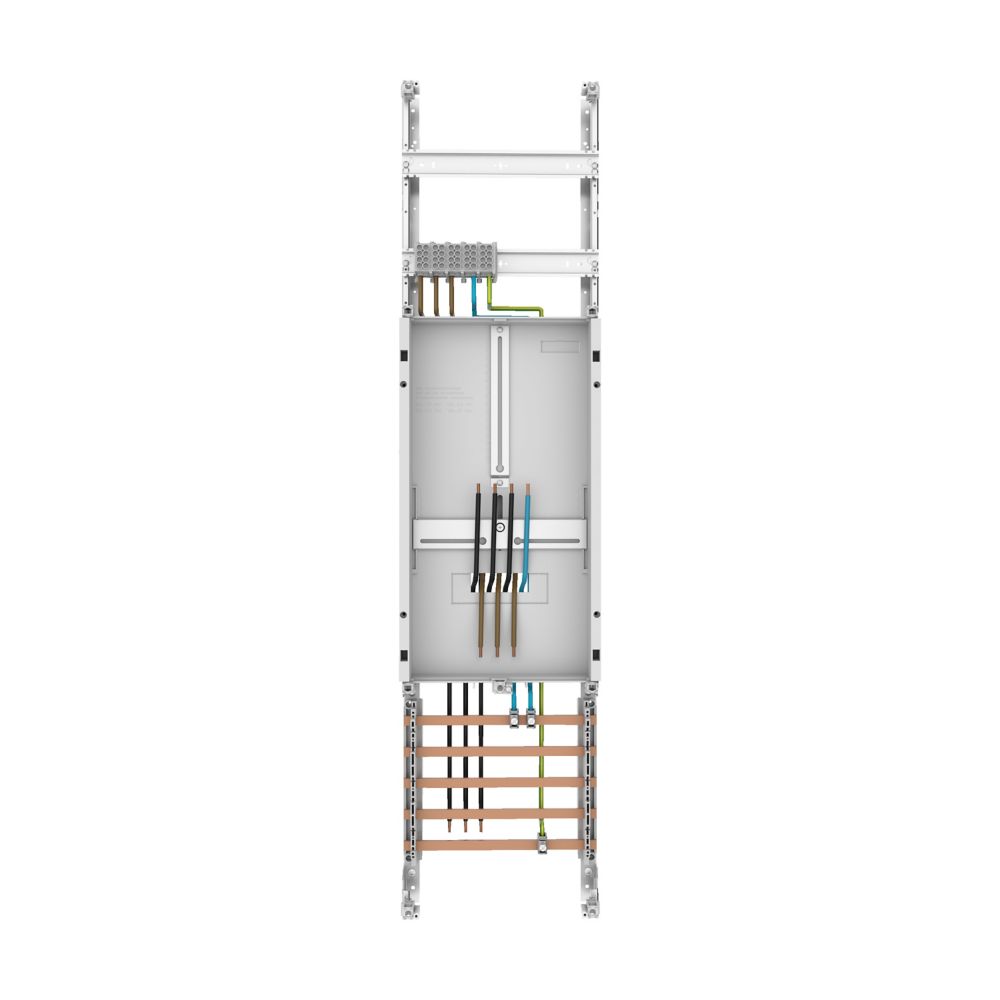 Zählerfeld 3-Punkt 1.050 mm; Feldanzahl = 1; Zählerplätze vorverdrahtet = 1; Zählerplätze Reserve = 0; Zählerplätze Verdrahtung = 16mm²; Sammelschienen 5-polig; HLAK 5-polig; Anschlussklemmen.
