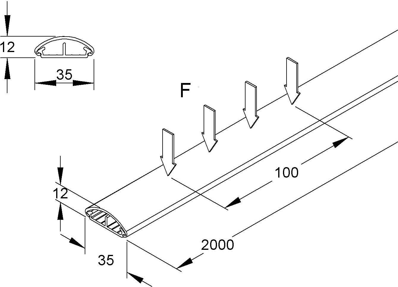 Bodenkanal, mit Deckel und einer Trennwand, kombinierbar mit Elektroinstallationskanälen, halogenhaltig. Bitte beachten: Die Befestigungspunkte müssen versetzt im Abstand von etwa 250 mm angeordnet werden. Die max. statische Belastbarkeit(F) des Bodenkanals bei Raumtemperatur (ca.22°C) beträgt 3750 N/10 cm Länge. kombinierbar mit Elektroinstallationskanal : HKL1022 HKL2020 HKL2030 HKL2031 HKL2052 Abmessungen (ca. Maße) H x B : 12 x 35 mm Lieferlänge L : 2000 mm Nutzbarer Querschnitt gesamt : 162 mm² Nutzbarer Querschnitt linke/rechte Kammer : 81 mm² Werkstoff : PVC-hart (Polyvinylchlorid) Farbton : steingrau RAL : 7030 (ähnlich)