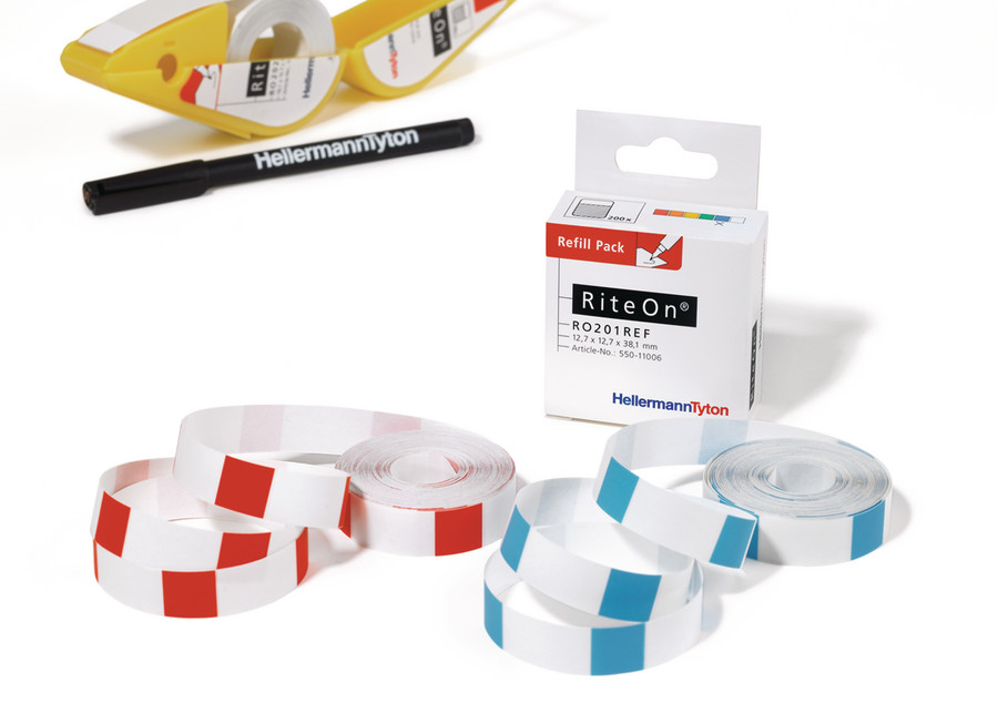 Praktischer RiteOn-Etikettenspender für die manuelle Beschriftung. Ideal für Reparatur- und Wartungsarbeiten bei kleinen Volumen. Einfaches Beschriften und Verarbeiten der Etiketten. Hervorragender Schutz gegenüber Feuchtigkeit und mechanischem Abrieb durch das Schutzlaminat. Markierstift T82 für professionelle und dauerhafte Handbeschriftung. Beschreiben der Etiketten im Sichtfenster des Dispensers und anschließendes Applizieren. Nachfüllpackungen erhältlich (REF). Die Nachfüllpackungen für die RiteOn Dispenser sind in 3 Größen und 6 unterschiedlichen Farben erhältlich. Bereits vorhandene Dispenser können so einfach und schnell neu bestückt werden.