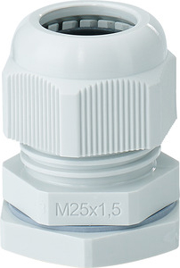 Anbau-Kabelstutzen für Vorprägungen M 25. Dichtbereich Ø 11-17 mm.