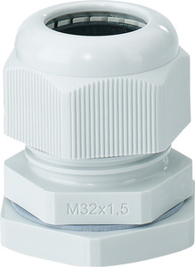 Anbau-Kabelstutzen für Vorprägungen M 32. Dichtbereich Ø 15-21 mm.