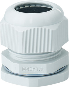 Anbau-Kabelstutzen für Vorprägungen M 40. Dichtbereich Ø 19-28 mm.