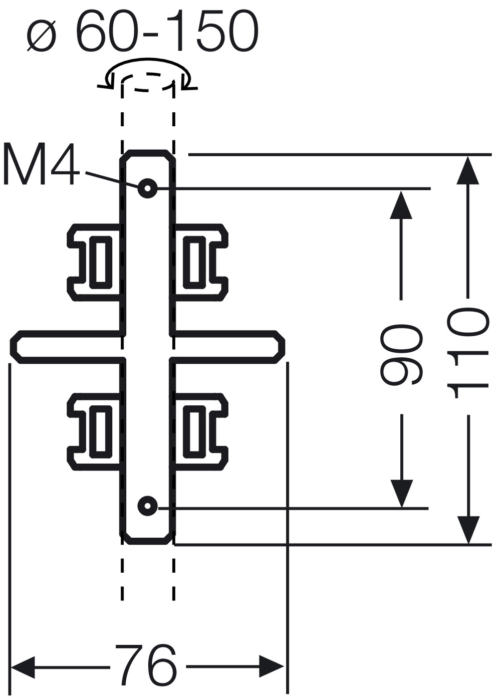 Befestigungsset für Rohr- oder Mastbefestigung von Kleinverteilern. Geeignet für Mastdurchmesser 60 - 150 mm.