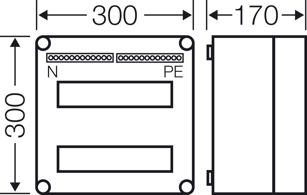 Gehäuse für den Bau von Energie-Schaltgerätekombinationen bis 630 A oder als Einzelgehäuse. Aus hochwertigem Polycarbonat schutzisoliert. Wanddurchführungen mit großen Öffnungen für die elektrische Verbindung der Gehäuse untereinander. Kabeleinführung an allen Gehäusewänden über metrische Vorprägungen oder Anbauflansche. Gehäuse zur Wandbefestigung auch über Außenlaschen oder mit Montageschienen. Automatengehäuse mit 24 Teilungseinheiten zum Einbau von Reiheneinbaugeräten nach DIN 43880. Mit PE- und N-Klemmen für Kupferleiter. N trennbar für unterschiedliche Potenziale. Mit Abdeckstreifen zum Verschließen von nicht benutzten Geräteausschnitten und Beschriftungsstreifen für die Stromkreiskennzeichnung. Transparenter Deckel, Deckelverschlüsse für Handbetätigung.Durchschnittliche Bewertung von 0 von 5 Sternen