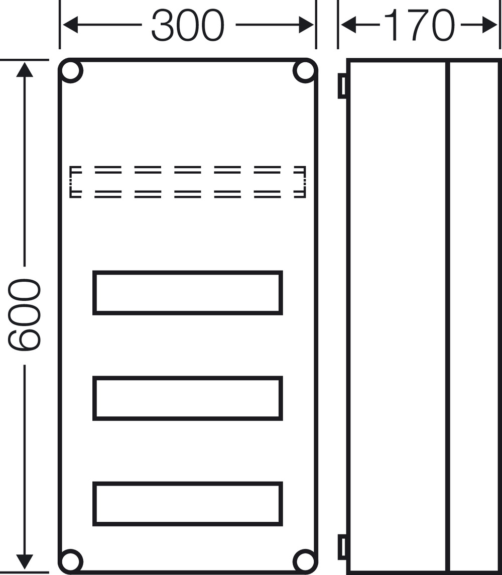 Anbauflansch ohne Vorprägungen für Gehäusewände von 300 mm.