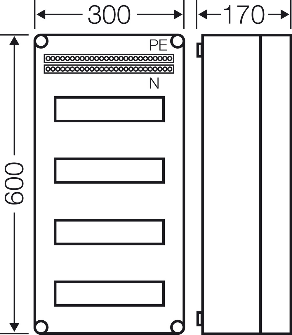 Gehäuse für den Bau von Energie-Schaltgerätekombinationen bis 630 A oder als Einzelgehäuse. Aus hochwertigem Polycarbonat schutzisoliert. Wanddurchführungen mit großen Öffnungen für die elektrische Verbindung der Gehäuse untereinander. Kabeleinführung an allen Gehäusewänden über metrische Vorprägungen oder Anbauflansche. Gehäuse zur Wandbefestigung auch über Außenlaschen oder mit Montageschienen. Automatengehäuse mit 48 Teilungseinheiten zum Einbau von Reiheneinbaugeräten nach DIN 43880. Mit PE- und N-Klemmen für Kupferleiter. N trennbar für unterschiedliche Potenziale. Mit Abdeckstreifen zum Verschließen von nicht benutzten Geräteausschnitten und Beschriftungsstreifen für die Stromkreiskennzeichnung. Transparenter Deckel, Deckelverschlüsse für Handbetätigung.Durchschnittliche Bewertung von 0 von 5 Sternen