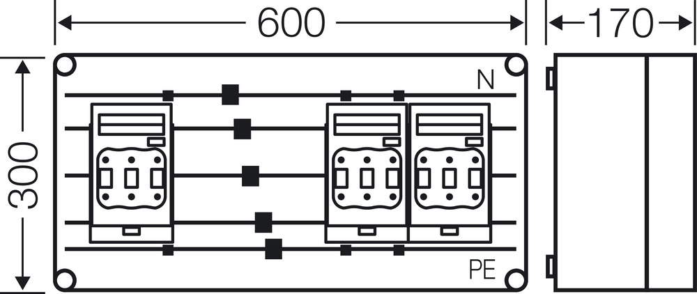Gehäuse für den Bau von Energie-Schaltgerätekombinationen bis 630 A oder als Einzelgehäuse. Aus hochwertigem Polycarbonat schutzisoliert. Wanddurchführungen mit großen Öffnungen für die elektrische Verbindung der Gehäuse untereinander. Kabeleinführung an allen Gehäusewänden über metrische Vorprägungen oder Anbauflansche. Gehäuse zur Wandbefestigung auch über Außenlaschen oder mit Montageschienen. Gehäuse mit Sicherungslasttrennschalter NH 00, 3-polig, nach IEC 60947-3 auf Sammelschienen. Mit Zuleitungsklemmen, PE- und N-Klemmen und Berührungsschutz. Anschlussrichtung veränderbar. Deckelverschlüsse für Werkzeugbetätigung.Durchschnittliche Bewertung von 0 von 5 Sternen
