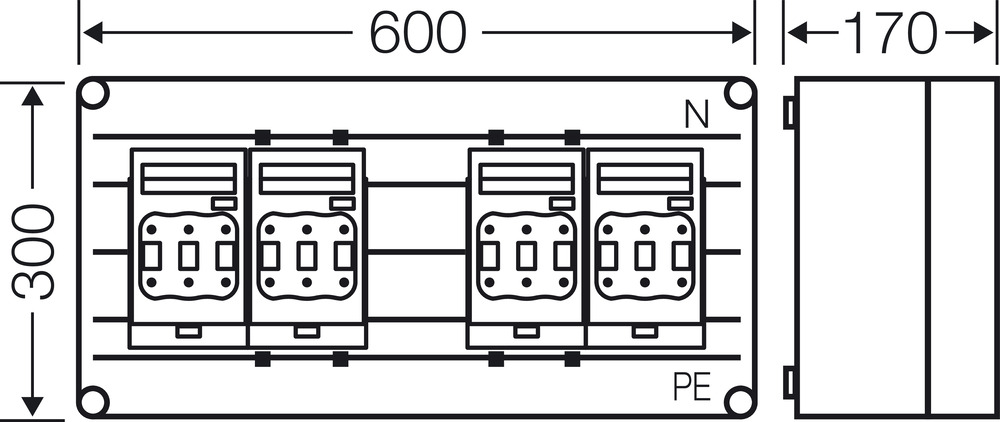 Gehäuse für den Bau von Energie-Schaltgerätekombinationen bis 630 A oder als Einzelgehäuse. Aus hochwertigem Polycarbonat schutzisoliert. Wanddurchführungen mit großen Öffnungen für die elektrische Verbindung der Gehäuse untereinander. Kabeleinführung an allen Gehäusewänden über metrische Vorprägungen oder Anbauflansche. Gehäuse zur Wandbefestigung auch über Außenlaschen oder mit Montageschienen. Gehäuse mit Sicherungslasttrennschalter NH 00, 3-polig, nach IEC 60947-3 auf Sammelschienen. Ohne Zuleitungsklemmen. Mit PE- und N-Klemmen und Berührungsschutz. Anschlussrichtung veränderbar. Deckelverschlüsse für Werkzeugbetätigung.Durchschnittliche Bewertung von 0 von 5 Sternen
