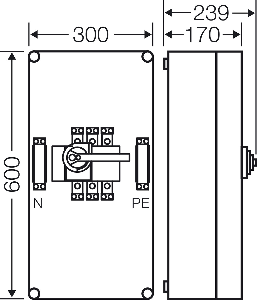 Gehäuse für den Bau von Energie-Schaltgerätekombinationen bis 630 A oder als Einzelgehäuse. Aus hochwertigem Polycarbonat schutzisoliert. Wanddurchführungen mit großen Öffnungen für die elektrische Verbindung der Gehäuse untereinander. Kabeleinführung an allen Gehäusewänden über metrische Vorprägungen oder Anbauflansche. Gehäuse zur Wandbefestigung auch über Außenlaschen oder mit Montageschienen. Gehäuse mit Lasttrennschalter 160 A, 3-polig, nach IEC 60947-3. Mit PE- und N-Klemmen für Kupferleiter. Griff des Lasttrennschalters abschließbar. Deckelverschlüsse für Werkzeugbetätigung.Durchschnittliche Bewertung von 0 von 5 Sternen
