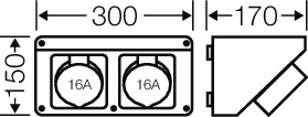 Connection Box mit 2 x CEE Steckdose 16 A, 5-polig. Zum Anbau an Gehäusewände 300 mm. Steckdosen können um 90° gedreht werden.