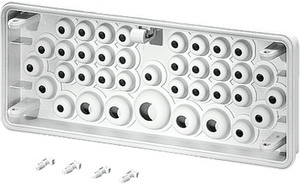 Anbauflansch mit Dichtmembranen zur Kabeleinführung 29 x Ø 7-12 mm, 4 x Ø 7-14 mm, 4 x Ø 11-20 mm, 1 x Ø 16-29 mm für Gehäusewände von 300 mm.