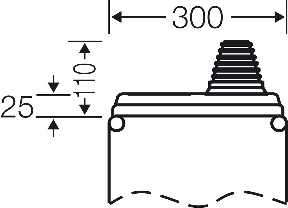 Kabeleinführungsflansch mit Dichtbereich 1 x Ø 30-72 mm für Gehäusewände von 300 mm.
