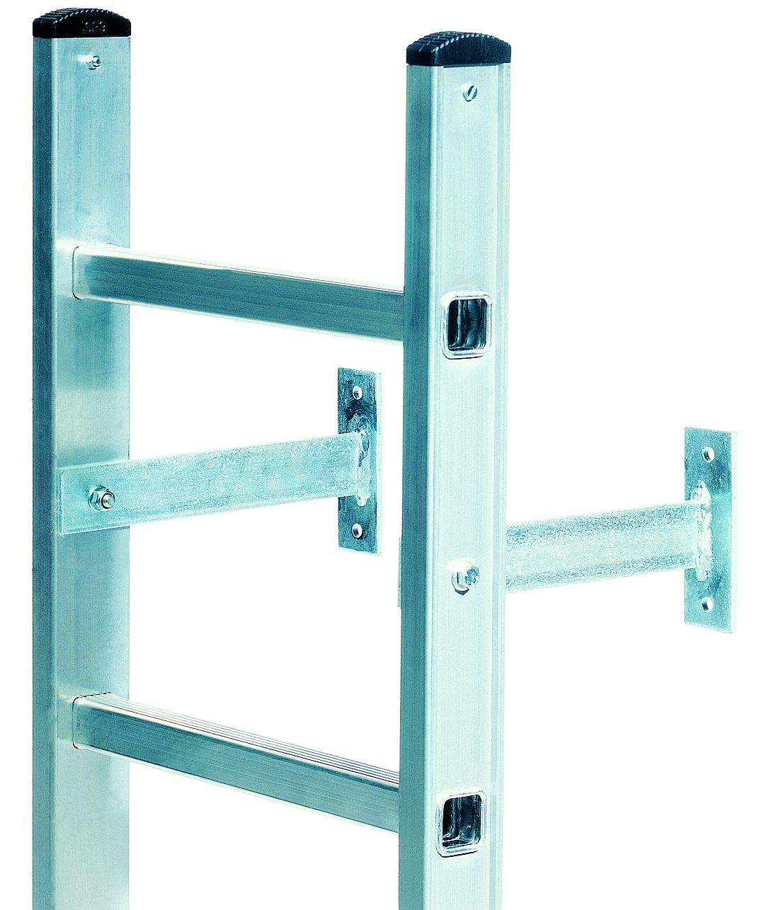 Wandanker zum Einputzen zur senkrechten Festmontage von Leitern an Wänden, die Montage erfolgt an der Innenseite der Leiter, Lieferung paarweise inklusive Befestigungsmittel, für den senkrechten Einbau von Leitern sind rechtwinklig eingebaute Sprossen erforderlich