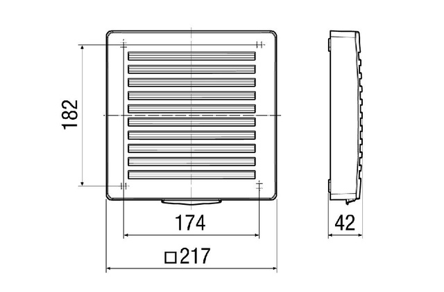 - Außenabdeckung aus Kunststoff. - Farbe verkehrsweiß, ähnlich RAL 9016. - Mit integrierter Kondensatabtropkante. - Die Gitter sind strömungsoptimiert, um Luftverwirbelungen zu minimieren und die Abluft wird von der Außenwand fern gehalten. Somit werden die Verfärbungen und die Schmutzablagerungen an der Außenfassade deutlich minimiert. - Eine Außenabdeckung wird als notwendiges Zubehör für die Endmontage-Sets PP 45 K, PP 45 O und PP 45 RC benötigt.Artikel:PP 45 AK - Einbauort: Außenwand - Material: Kunststoff - Farbe: verkehrsweiß, ähnlich RAL 9016 - Gewicht: 0,3 kg - Gewicht mit Verpackung: 0,32 kg - Breite: 217 mm - Höhe: 217 mm - Tiefe: 42 mm - Breite mit Verpackung: 225 mm - Höhe mit Verpackung: 225 mm - Tiefe mit Verpackung: 50 mm - Geeignet für Dachlüfter: nein - Geeignet für Wandaufbaulüfter: nein - Geeignet für Boxlüfter: nein - Geeignet für Zirkulationslüfter: nein - Geeignet für Rohrlüfter: nein - Geeignet für Zentrifugallüfter: nein - Geeignet für Wandeinbaulüfter: nein - Geeignet für Wohnhauslüfter: nein - Geeignet für Wärmerückgewinnungsanlagen: nein- Produktdatenblatt_0093_0176.pdf