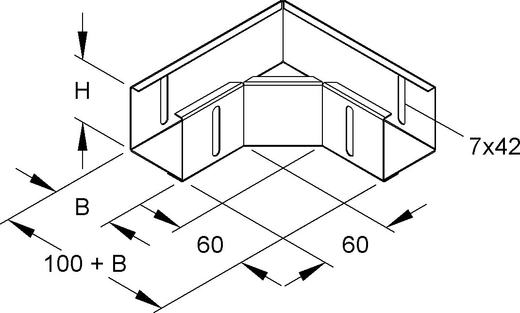 Deckel für Bogen 90°, ohne Drehriegelverschlüsse. Bedingt durch äußere Einflüsse, wie z.B. Windlasten, ist eine Verwendung im Außenbereich nur mit einer zusätzlichen Sicherung (selbstschneidende Schrauben, Stahlband etc.) möglich. Drehriegel RDRS 2 als Ersatzbedarf einsetzbar. für Bogen 90° : RESK 50.100... Breite B (InnenMaße) : 104 mm Werkstoff : Stahl, bandverzinkt nach DIN EN 10346