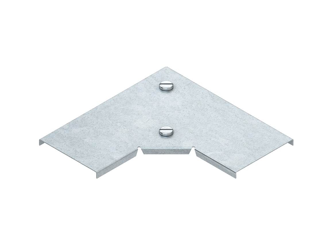 Deckel für Bogen 90°, ohne Drehriegelverschlüsse. Bedingt durch äußere Einflüsse, wie z.B. Windlasten, ist eine Verwendung im Außenbereich nur mit einer zusätzlichen Sicherung (selbstschneidende Schrauben, Stahlband etc.) möglich. Drehriegel RDRS 2 als Ersatzbedarf einsetzbar. für Bogen 90° : RESK 50.100... Breite B (InnenMaße) : 104 mm Werkstoff : Stahl, bandverzinkt nach DIN EN 10346