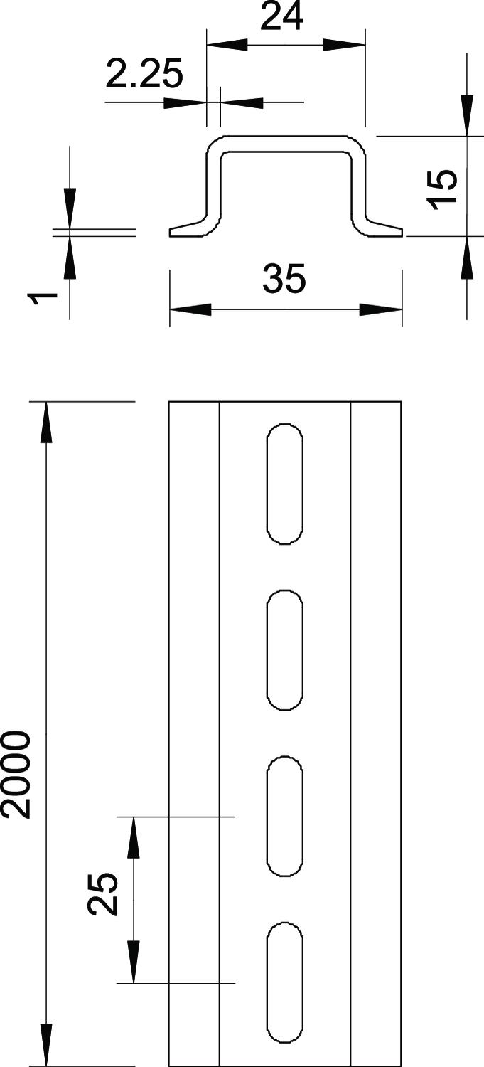 OBO Bettermann Vertr Hutschiene gelocht 2069 15 2.2 GTPL