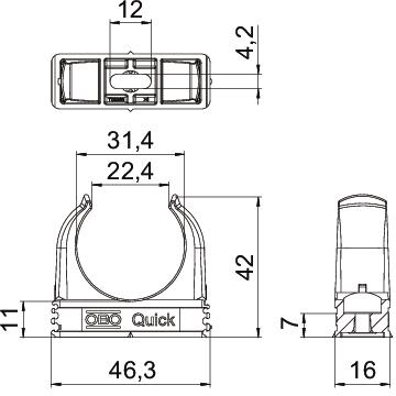 Aufputzschelle zur Aufnahme von metrischen Stahlpanzerrohren, leichten und schweren Isolierrohren sowie Elektroinstallationsrohr Quick-Pipe. Universelle Befestigungsmöglichkeiten an Wand und Decke im Innen- und geschützten Außenbereich. Mit Langloch zum seitlichen Ausrichten bei Montage mit Holzschraube oder Schlagdübel. Werkzeuglose Rohrmontage. Aneinander reihbar auch mit OBO Multi-Quick- oder proQuick-Schelle. Größe M16 - M32 kann auf Gewinde M6 geschraubt werden. Befestigungsabstand 50 - 60 cm, max. Auszugswerte F bei 20° C Raumtemperatur siehe Tabelle.- Produktdatenblatt_2149022.pdf