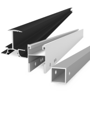 Die Profil-Serie ProLine mit passendem Zubehör. Montage mit Modulklemmen der Serie ProLine und dem ProLine-Klicksystem. Mechanische Anbindung: Oben Klicknut ProLine, unten Schraubkanal M10, 40 mm x 40 mm.