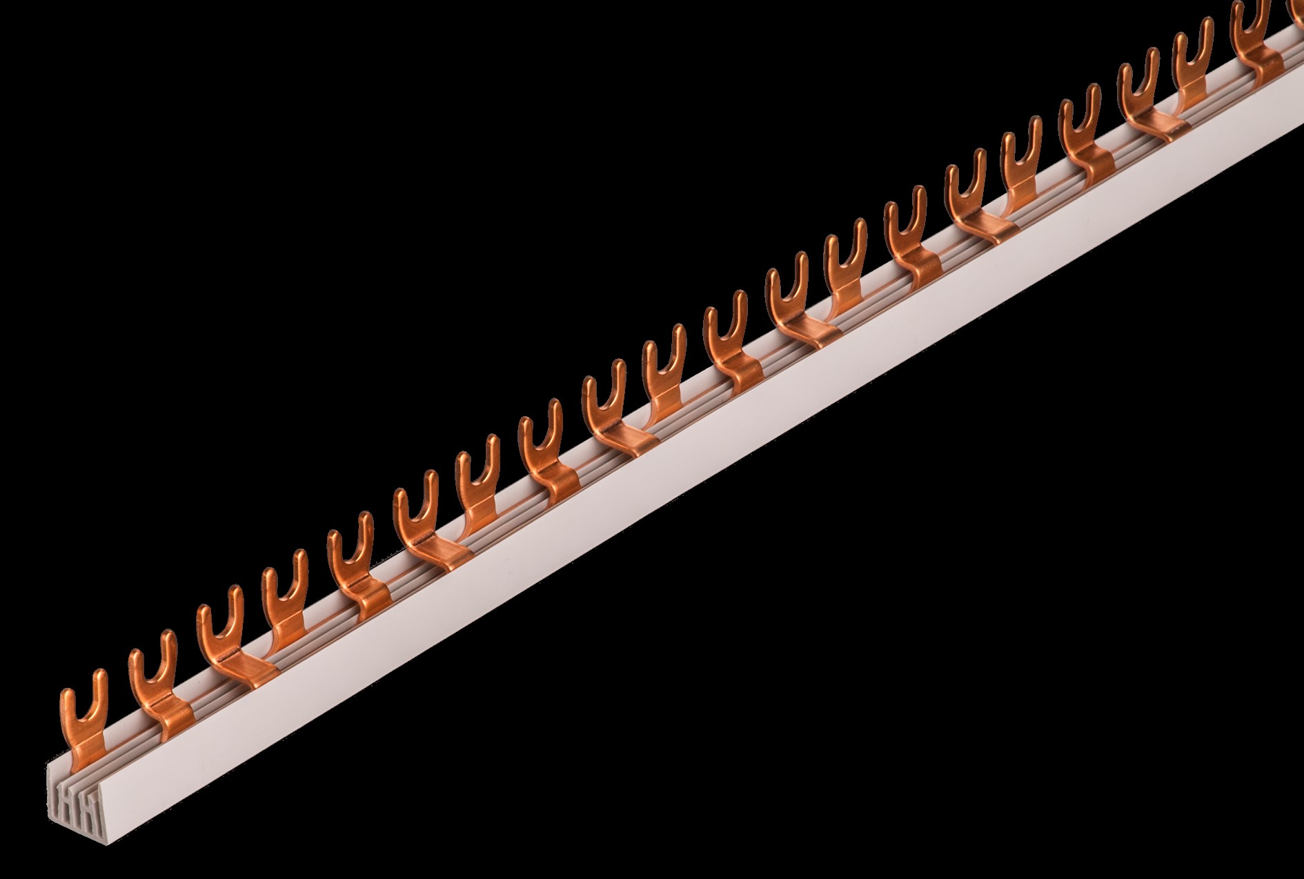 Phasenschiene, dreipolig, Sammelschienenaustritt oben für LS mit Schraubanschluss oder Doppelfunktionsklemme.