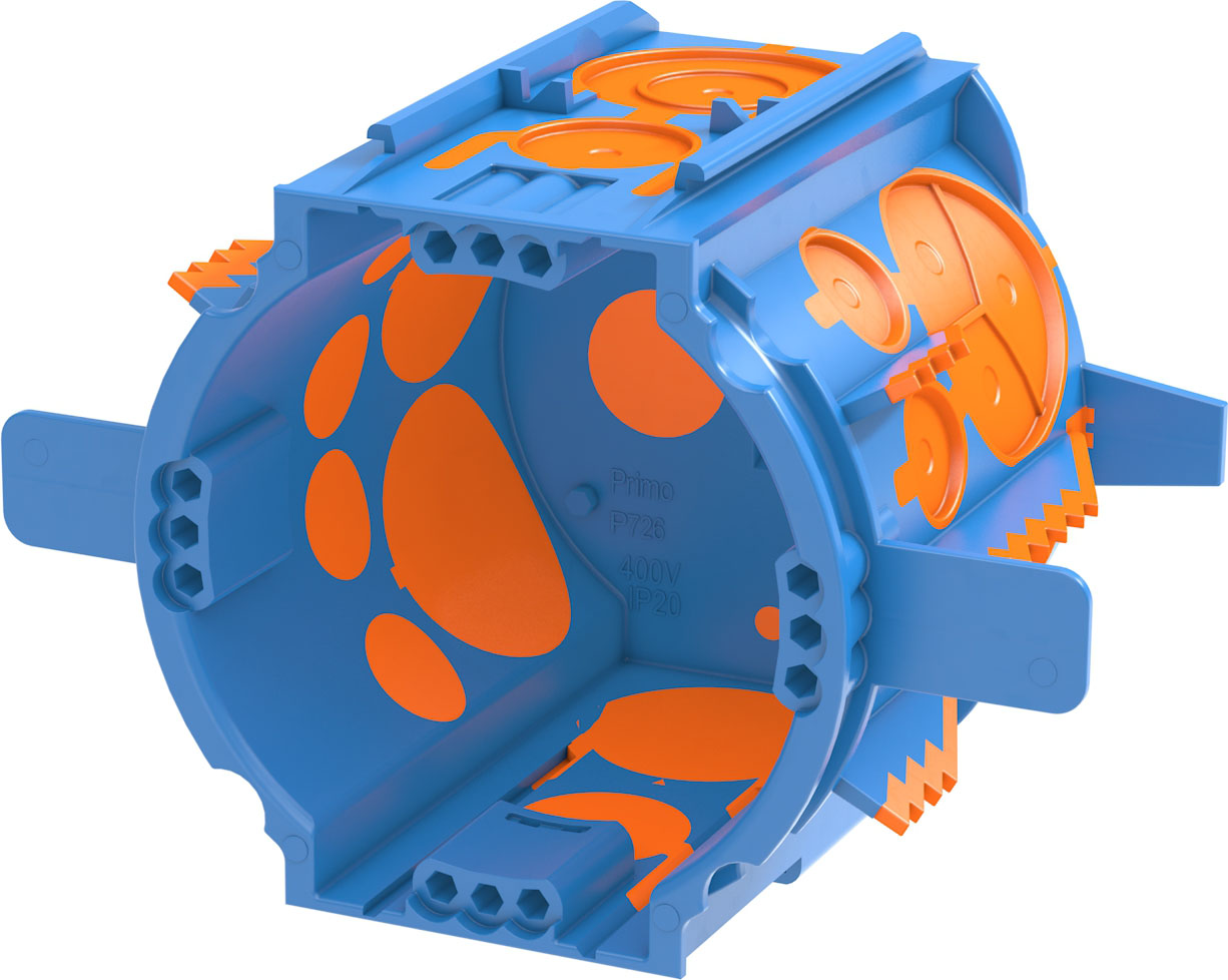Bei der Primo Thermo-Elektronikdose TED-70 mit einem Durchmesser von 60 mm entfällt aufwendiges Gipsen wie bei herkömmlichen Unterputzdosen. Die Thermo-Elektronikdose TED-70 wird in wenigen Sekunden einfach und schnell mit dem eigens entwickelten Thermoschaum montiert. Die Dose kann als Elektronikdose mit zusätzlichem Installationsraum für Netzwerkkabel, KNX-Systeme oder sonstige Feldbusse zur Gebäudeautomation, genutzt werden. Alternativ kann die zweite Öffnung aufgebrochen werden, sodass eine Mehrfachkombination mit Norm-Kombinationsabstand von 71 mm entsteht. Durch die SCS-Verbindungstechnik können mehrere Thermo-Elektronikdosen aneinandergereiht und fest verbunden werden - ideal für schnelles Durchverdrahten oder den Einbau vorverdrahteter Geräte. Damit die Dose nach dem Verputzen schnell gefunden wird, empfehlen wir den Universalputzdeckel zum Schutz des Doseninneren.