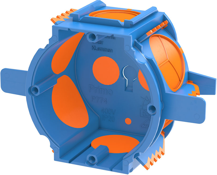 Bei der Primo Thermo-Elektronikdose TED-70 mit einem Durchmesser von 60 mm entfällt aufwendiges Gipsen wie bei herkömmlichen Unterputzdosen. Die Thermo-Elektronikdose TED-70 wird in wenigen Sekunden einfach und schnell mit dem eigens entwickelten Thermoschaum montiert. Die Dose kann als Elektronikdose mit zusätzlichem Installationsraum für Netzwerkkabel, KNX-Systeme oder sonstige Feldbusse zur Gebäudeautomation, genutzt werden. Alternativ kann die zweite Öffnung aufgebrochen werden, sodass eine Mehrfachkombination mit Norm-Kombinationsabstand von 71 mm entsteht. Durch die SCS-Verbindungstechnik können mehrere Thermo-Elektronikdosen aneinandergereiht und fest verbunden werden - ideal für schnelles Durchverdrahten oder den Einbau vorverdrahteter Geräte. Damit die Dose nach dem Verputzen schnell gefunden wird, empfehlen wir den Universalputzdeckel zum Schutz des Doseninneren.