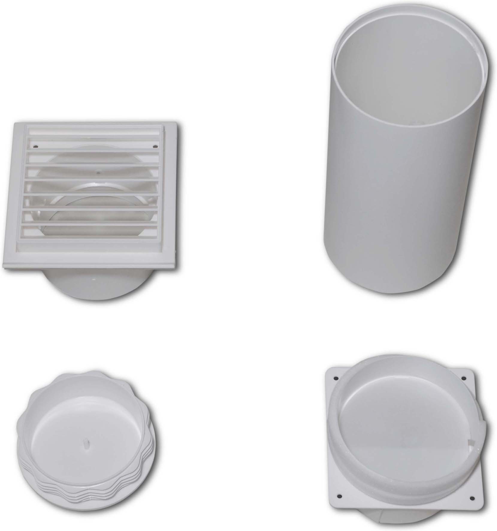 Wanddurchführung für Abluftschlauch der Geräteserie RKL 300/360 (Eco). Serienmäßig aus Kunststoff ,mit Ausblasgitter und Rüc…