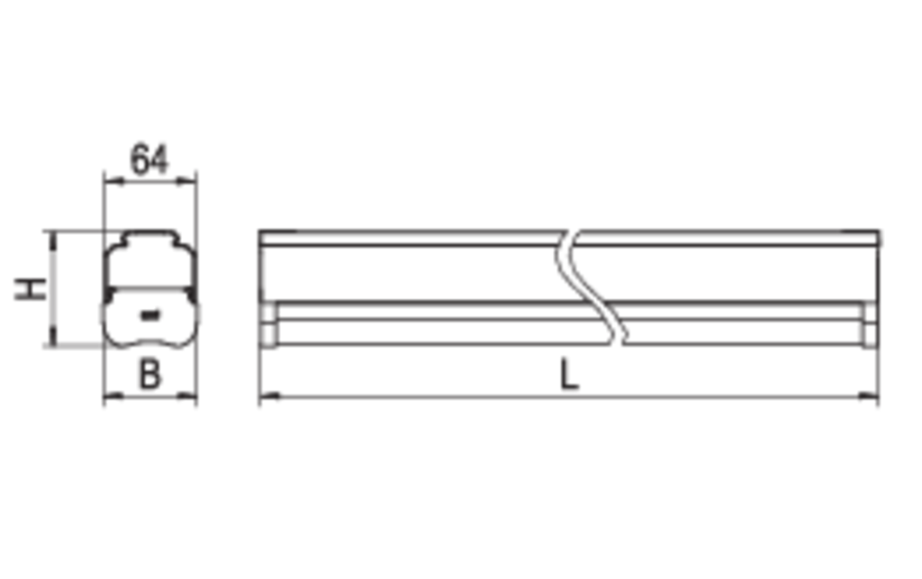 Geräteträger VLGFP der LINIA-Produktfamilie. Lichtlenkung durch Abdeckung opal, Ausstrahlungscharakteristik symmetrisch, ext…