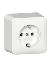 Schutzkontaktsteckdose (Typ F) 16 A 250 V~ Reinweiß glänzend System 55 Merkmale: - Tragring ist in Verbindung mit den Befestigungskrallen und Krallenschrauben geerdet. - Schnellbefestigung (ca. 3,5 Umdrehungen pro Befestigungskralle). - Eingehauste Spreizkrallen. - Einfachere Krallenbefestigung durch robusten Schraubenkopfantrieb PZ1 / Schlitz / PH. - Vereinfachte Installation durch patentierte Anordnung der großen Schlüssellochprofile mittels Dosenschrauben. - Geringe Einbautiefe. - Große, ergonomisch geformte Lösehebel. - Stabiler Erdungsbügel mit massiven Erdungsfingern. - Stabiler und korrosionsbeständiger Stahltragring. - Bruchsicherer Thermoplastsockel. Hinweise: - Mit erhöhtem Anpressdruck des Erdungsbügels geprüft nach T.N.O.