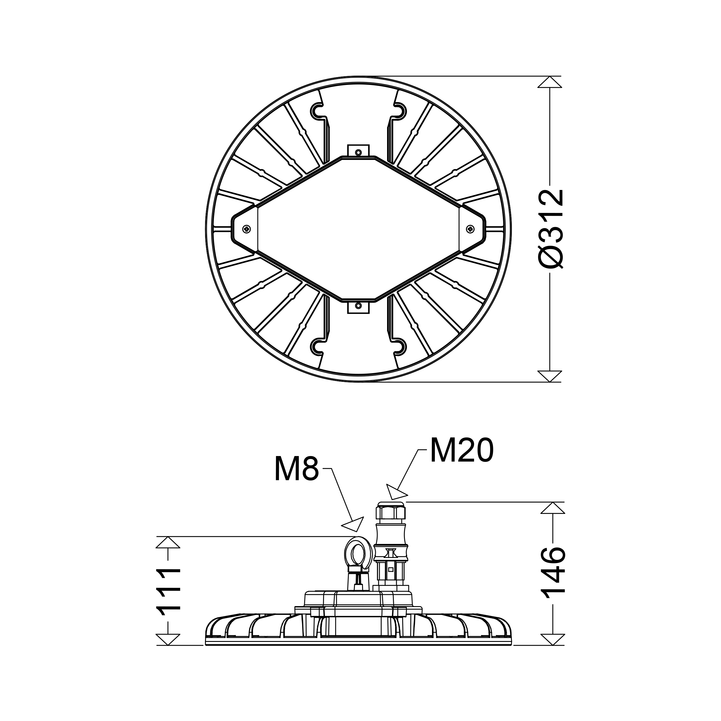 LED-Hallenleuchte, TRIANO disc, 65 W, 10000 lm, SKI, IP65, breitstrahlend, 5000 K, Ra= 80, Ta -25 °C/+50 °C, L80>100000 h (@Ta 25°C), L80>80000 h (@ Ta max), Optik PC klar, Verschluss Edelstahl (1.4301), Gehäuse Alu-Druckguss, Lackiert, Farbe grau, DB 702, für Räume mit erhöhter Brandgefahr (D), für Lebensmittelbereiche (IFS), EAN/GTIN:4041254350301.LED-Hallenleuchte TRIANO disc. Robuster Aluminium-Druckgusskörper mit Kühlrippenstruktur und integriertem EVG-Gehäuse, pulverlackiert, eingebautem Betriebsgerät, Schnellverbindungsstecker, Ringöse zur 1-Punkt Aufhängung, LED Modul sowie PC Abdeckung mit integrierten Optiken. LED Modul, Multi-Layer Technologie, mit direkter Anbindung an das Gehäuse zur Gewährleistung eines optimalen Thermomanagements. EVG mit Überlast- und Kurzschlussschutz, elektrischer Anschluss über Schnellsteckverbindung (FastConnect), Stecker vormontiert, Buchse beiliegend.