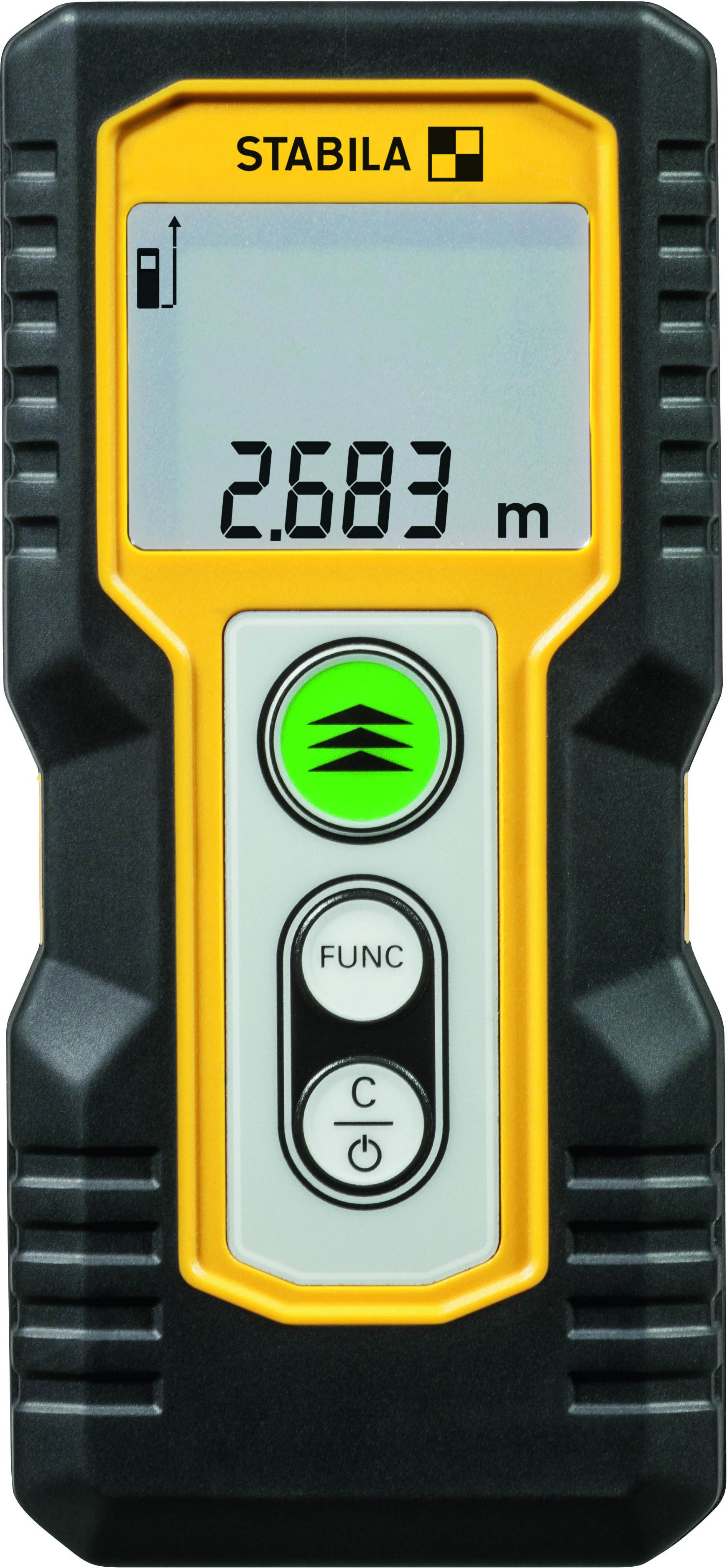 Kompakter, einfach zu bedienender Laser. 4 Basis-Messfunktionen: Länge, Fläche, Volumen und Dauermessung. Schnelle Ermittlung der Messergebnisse. Gute Ablesbarkeit dank großer Ziffern. Schlagfestes Gehäuse mit stoßabsorbierendem STABILA Softgrip-Mantel. ISO-zertifizierter Distanzmesser- die Angaben zu Reichweite (0,2- 30 m) und Genauigkeit (± 3,0 mm) erfüllen die internationale Norm ISO 16331-1. Schutzklasse IP 54: Schutz gegen Staubablagerungen im Inneren, Schutz gegen Spritzwasser aus allen Richtungen.