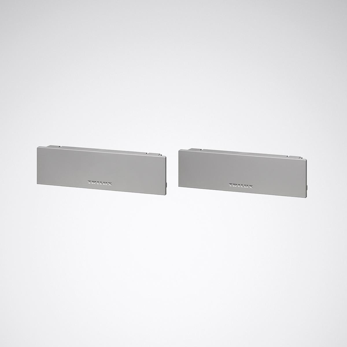 Kopfstücke für Einzelleuchten und Stirnseiten von Lichtbändern. Verpackungseinheit 2 Stück. Aus Kunststoff, Farbe silbergrau (ähnlich RAL 9006).